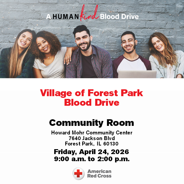 Blood Drive at Community Center + Add to Google Calendar + iCal / Outlook export Date Apr 24 2026 Time 9:00 am - 2:00 pm Location Howard Mohr Community Center Forest Park, IL Share this event