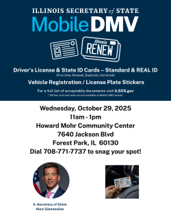 Cindy Lyons Health Fair & DMV visit + Add to Google Calendar + iCal / Outlook export Date Oct 29 2025 Expired! Time 10:00 am - 1:00 pm Location Howard Mohr Community Center Forest Park, IL Category Event Share this event